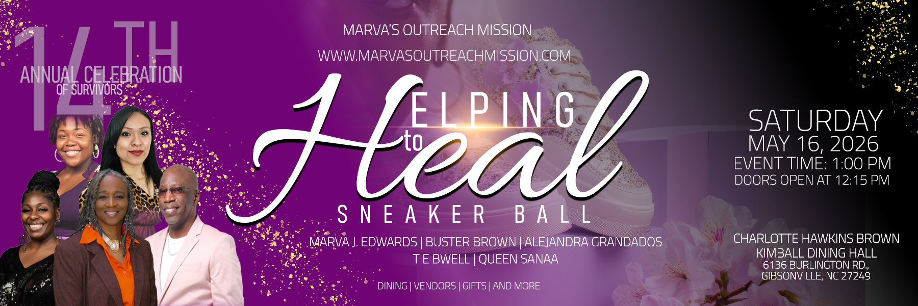 Please join us for our 14th Annual Celebration of Survivors. Our theme is “Helping to Heal”, Sneaker Ball